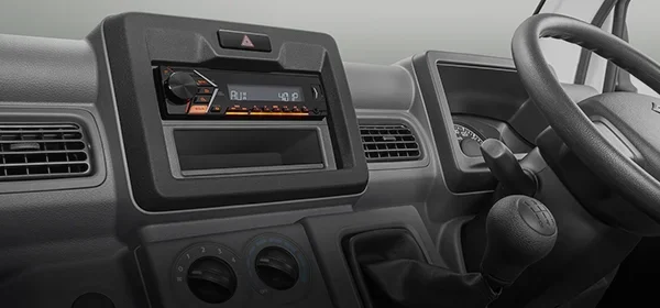 Supaya tidak bosan, Carry juga dibekali fitur hiburan berupa head unit single DIN. Ada juga varian yang dibekali AC, power steering elektrik, dan jok yang bisa diatur maju-mundur (sliding). Tidak lupa, supaya tidak mudah digondol penjahat, ada fitur immobilizer.
